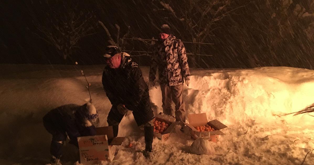 みかんを拾う人たちは結構本気。この時ばかりはみんな無言ですw